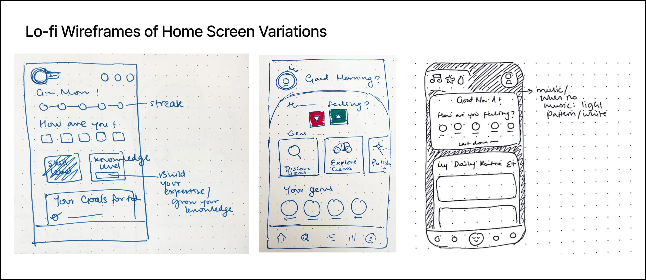 We thus introduced the concept of a “Gem”. A '“gem” would be an activity such as the Mood Check-In. Doing the activity everyday would be like “polishing your gem”, and the more you polished the gem, the more “shines” you would earn, which you could redeem for extra features.