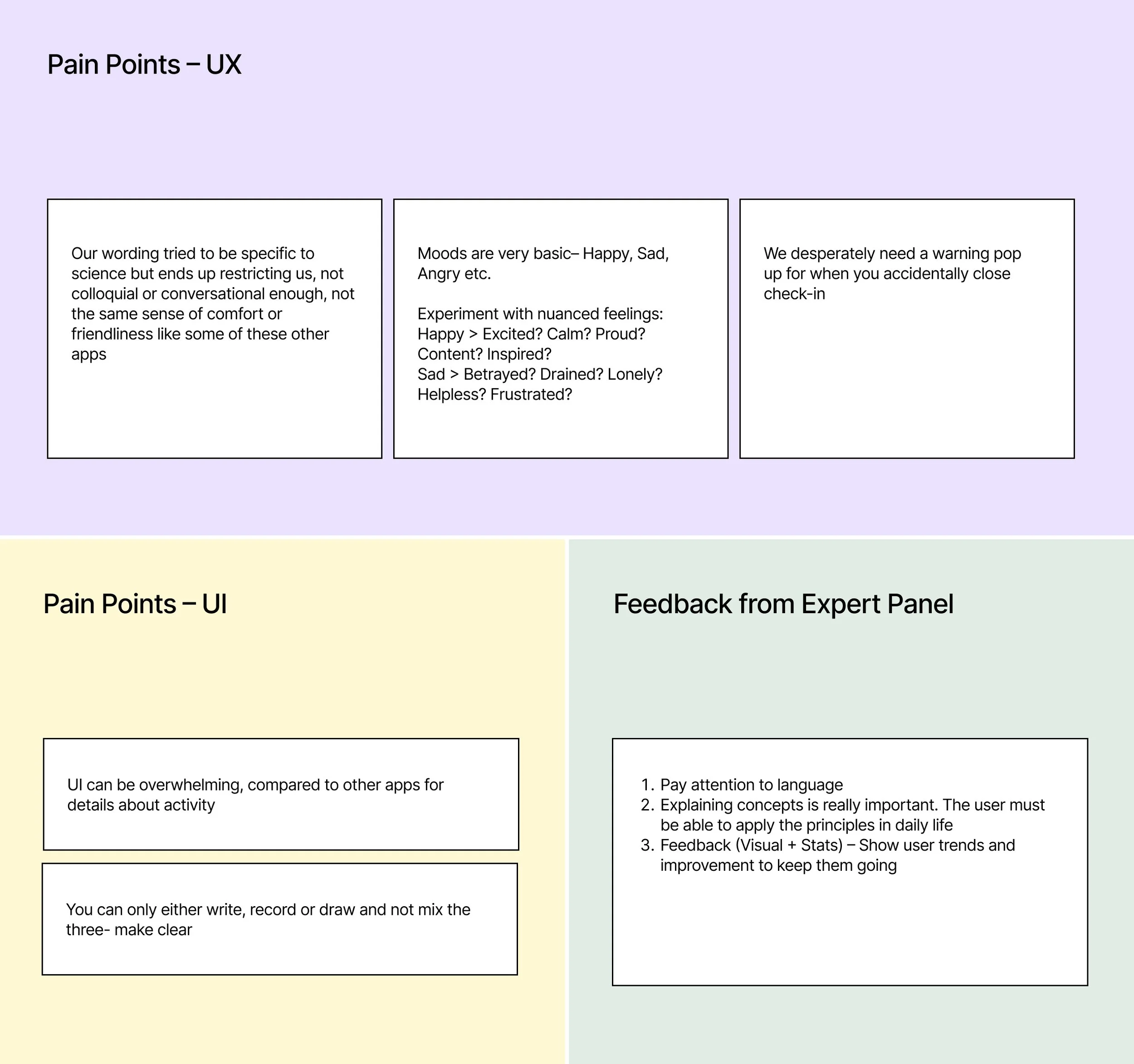 Competitor Analysis - synthesizing various Mood Check-In flows + Idenifying Pain Points in our existing flow.